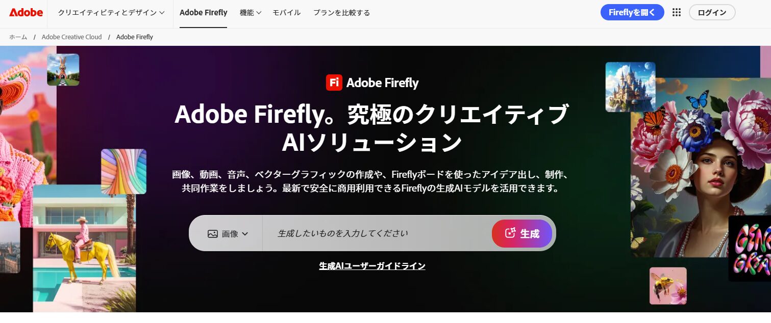 Fireflyの強みは、Adobe Creative Cloudとの親和性と法的安全性(著作権処理済み素材で学習)にあります。